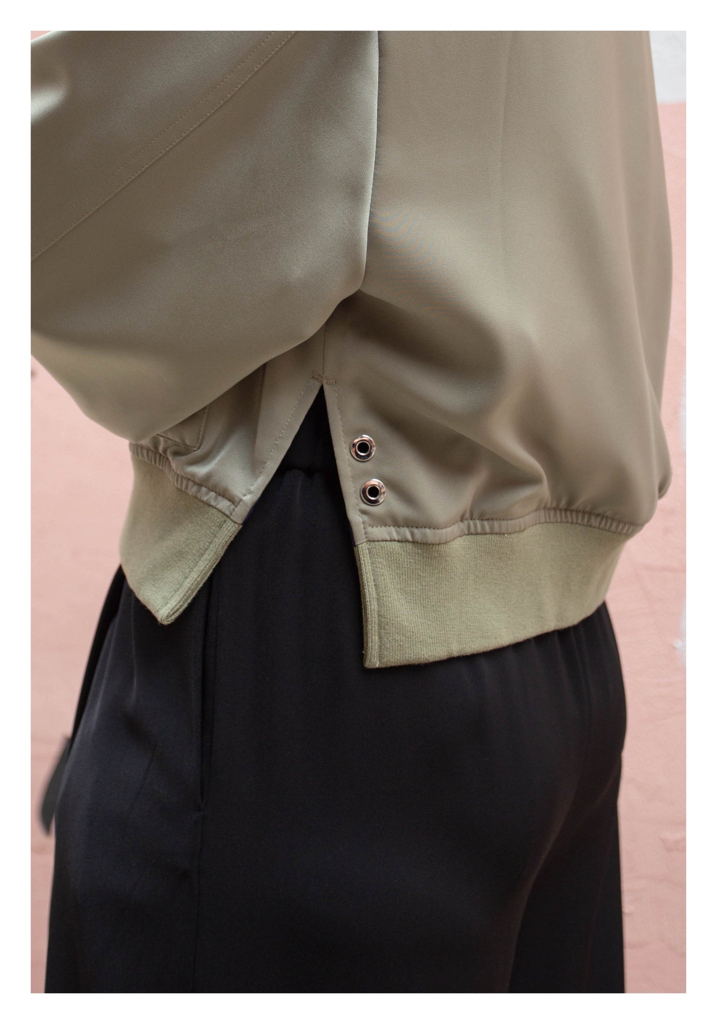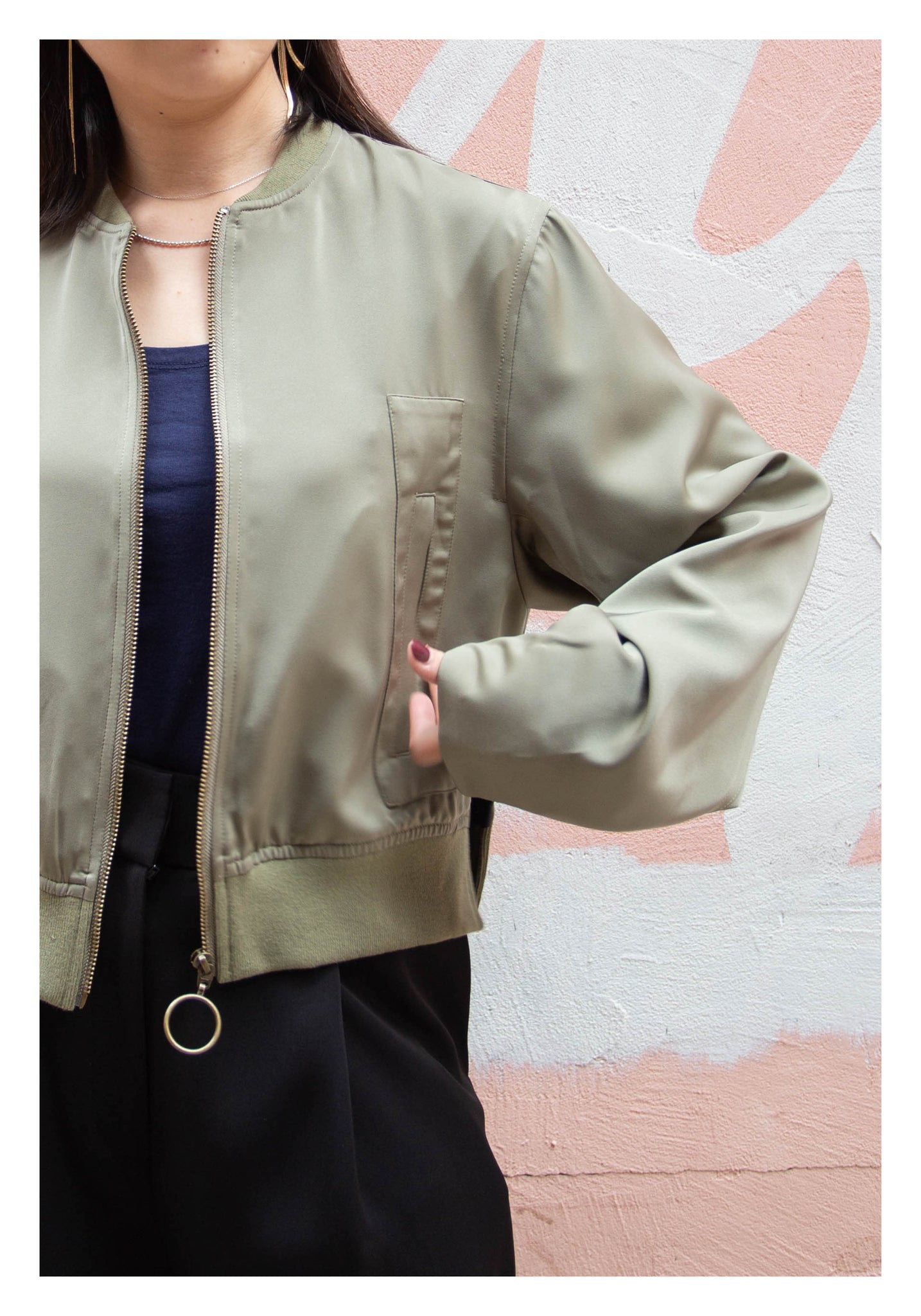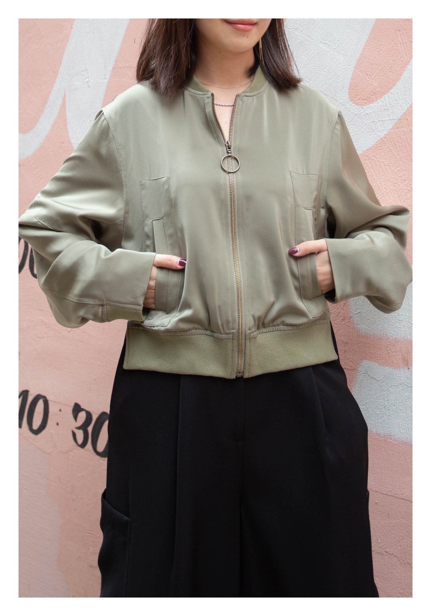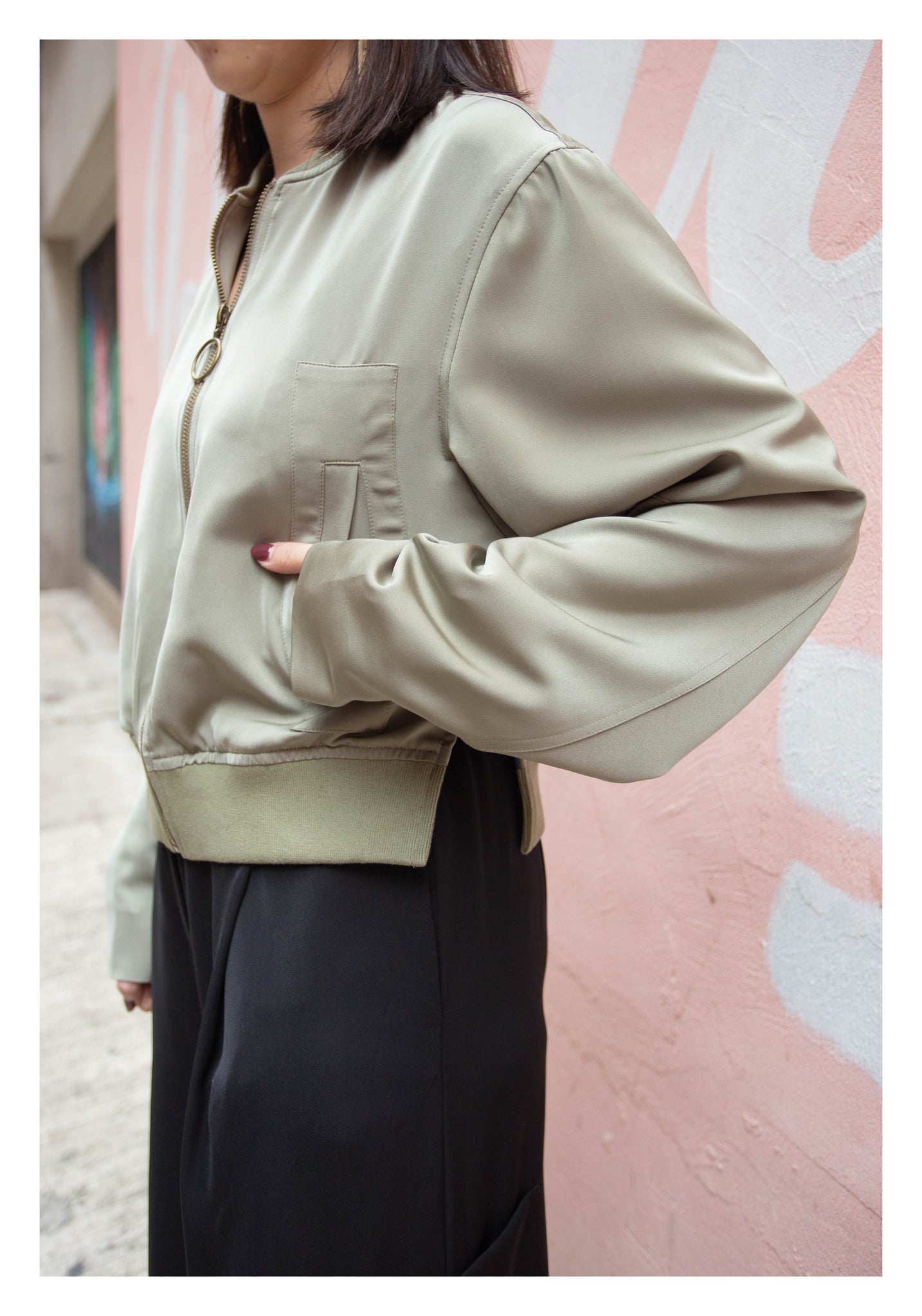 Craft in cropped length with side slit twisted bomber jacket style