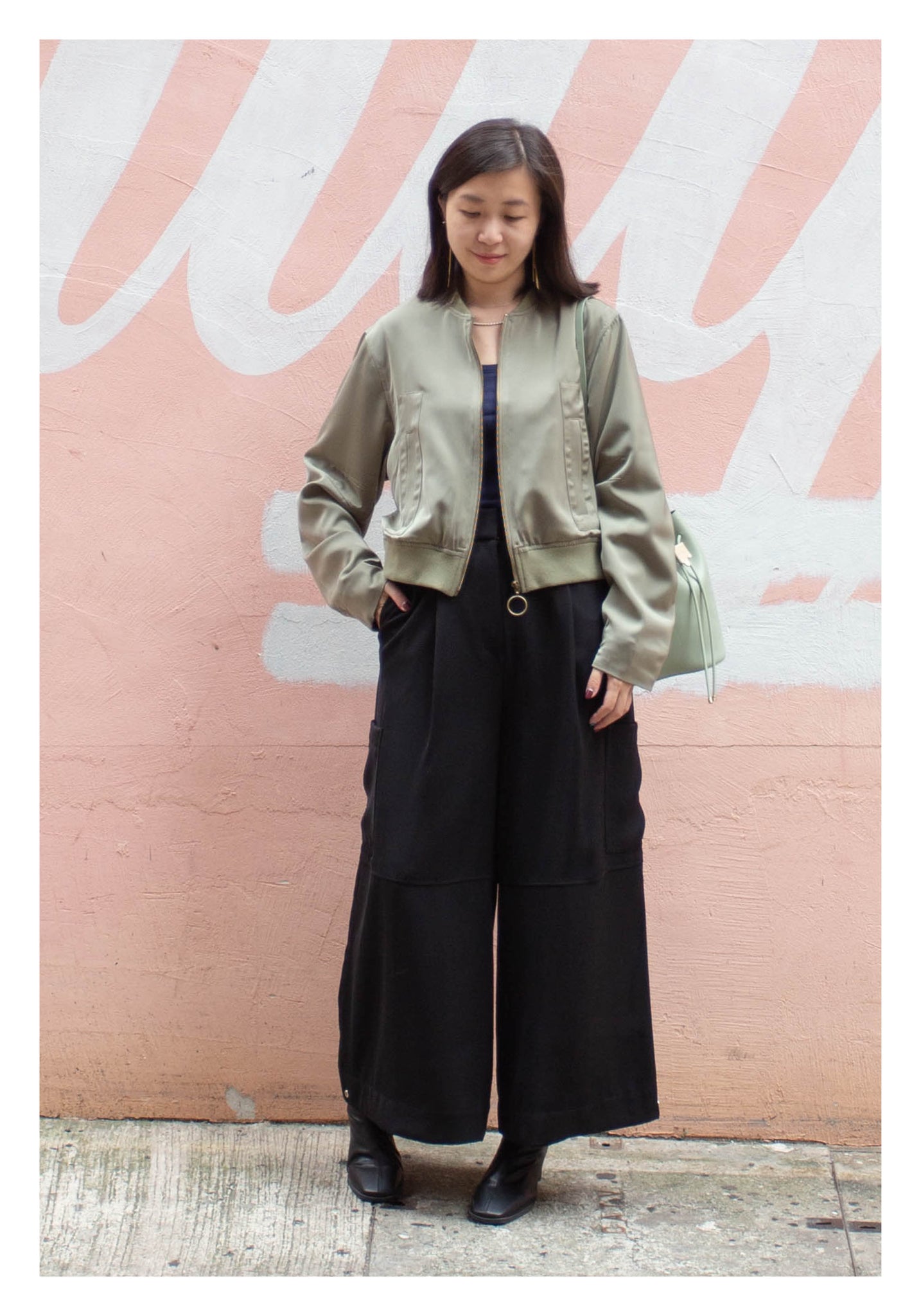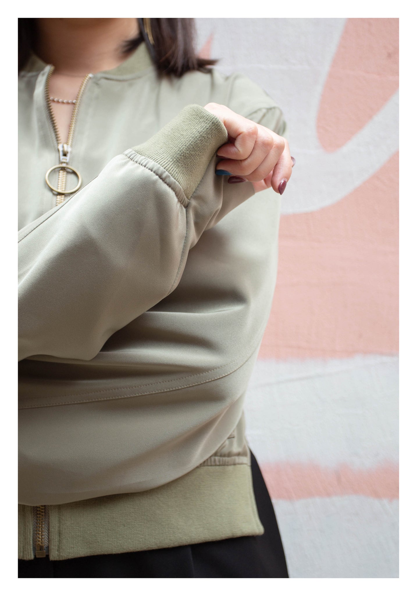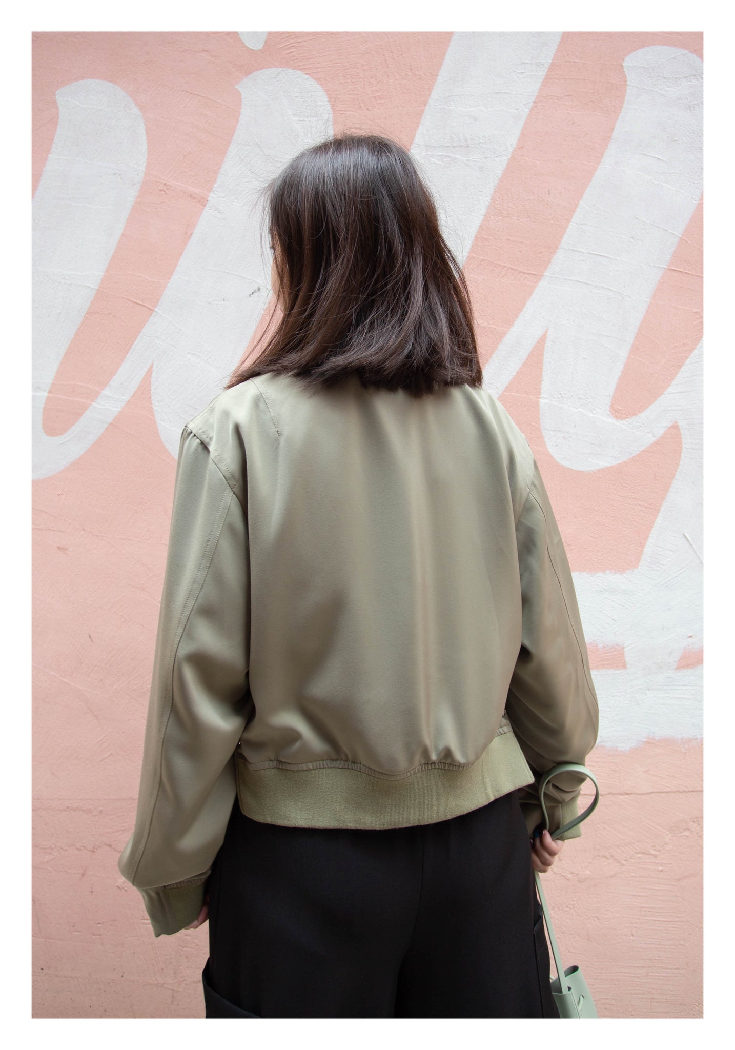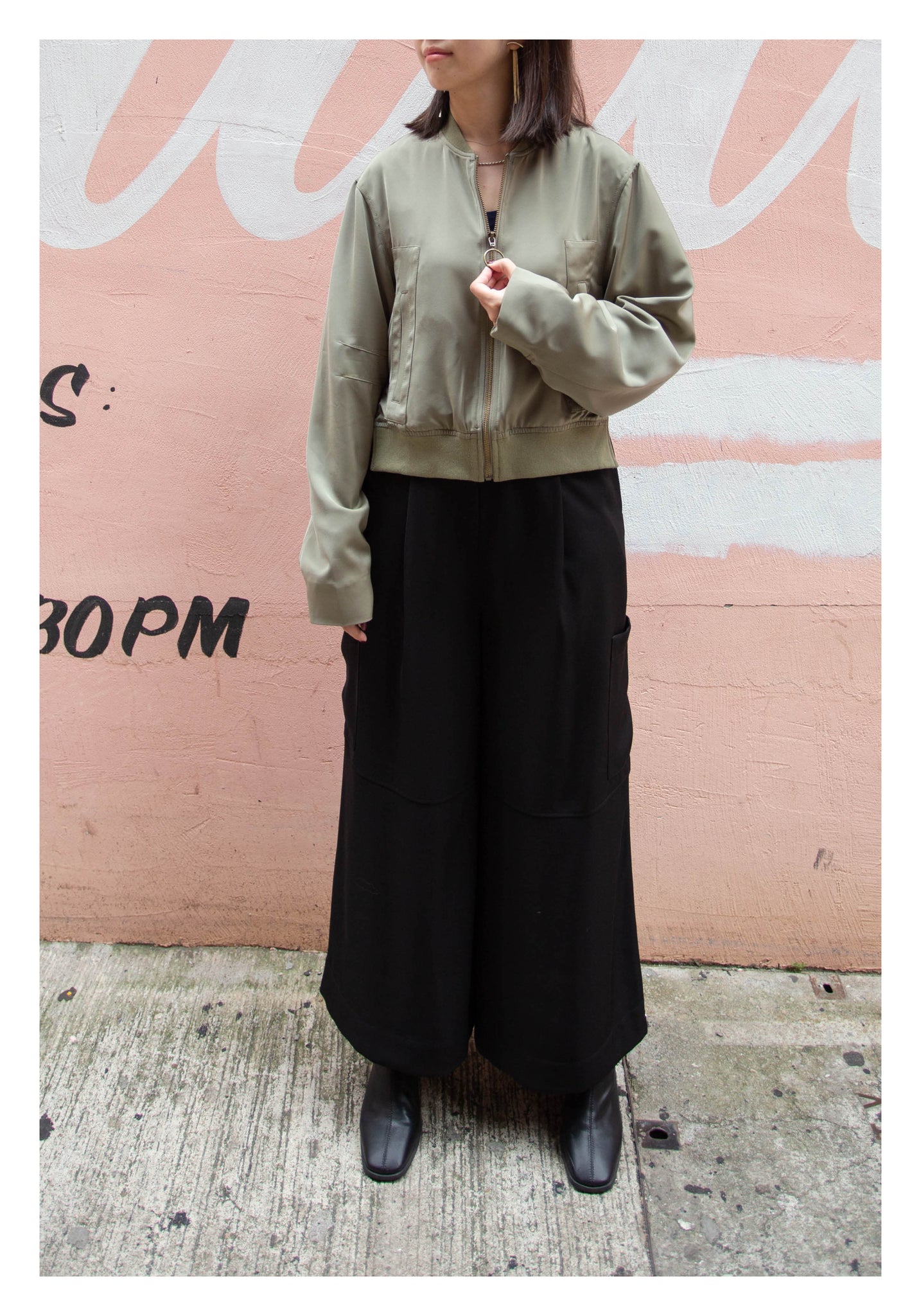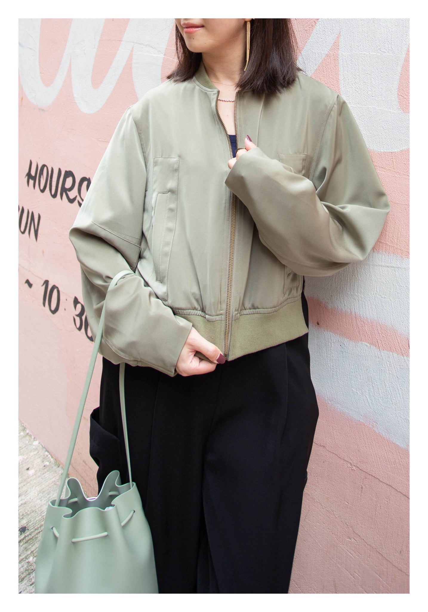 Craft in cropped length with side slit twisted bomber jacket style