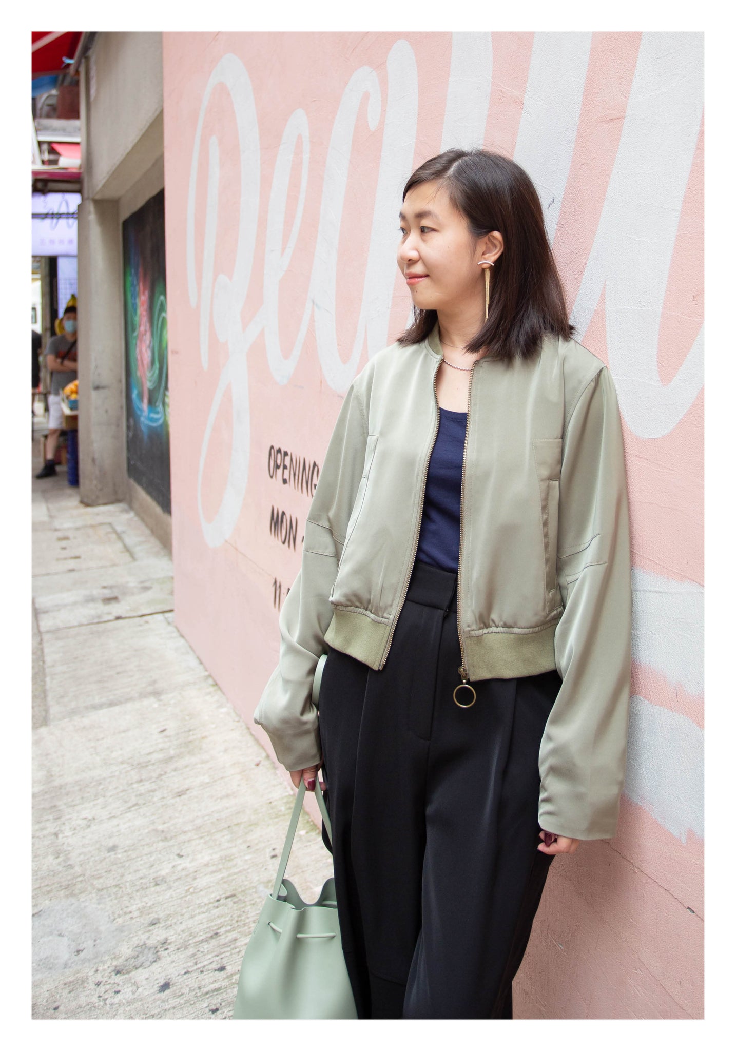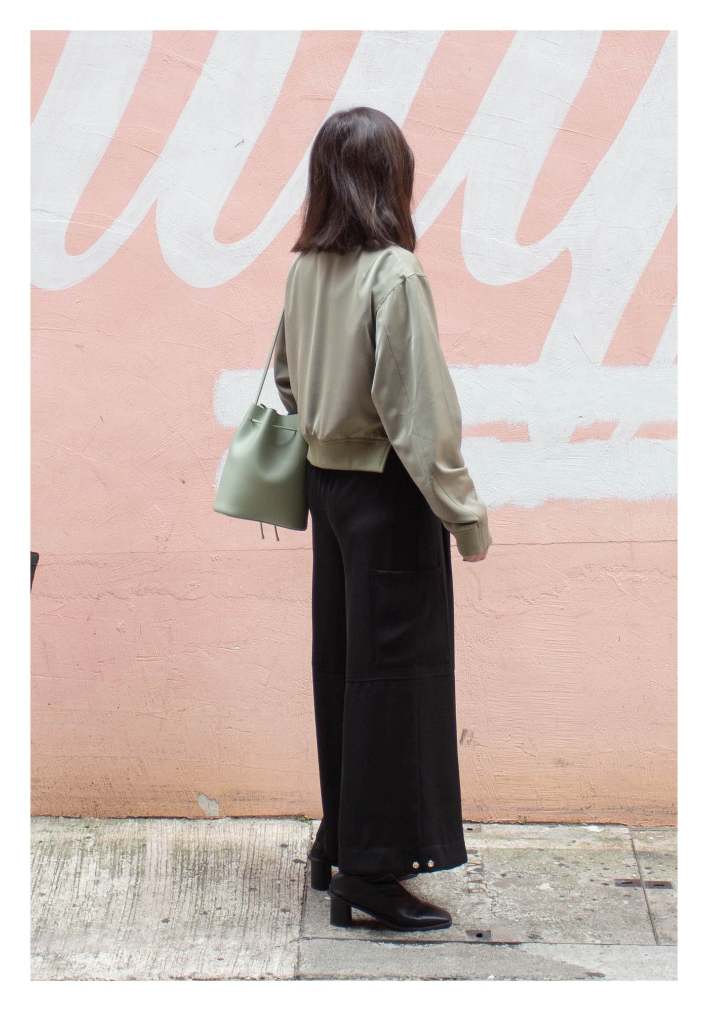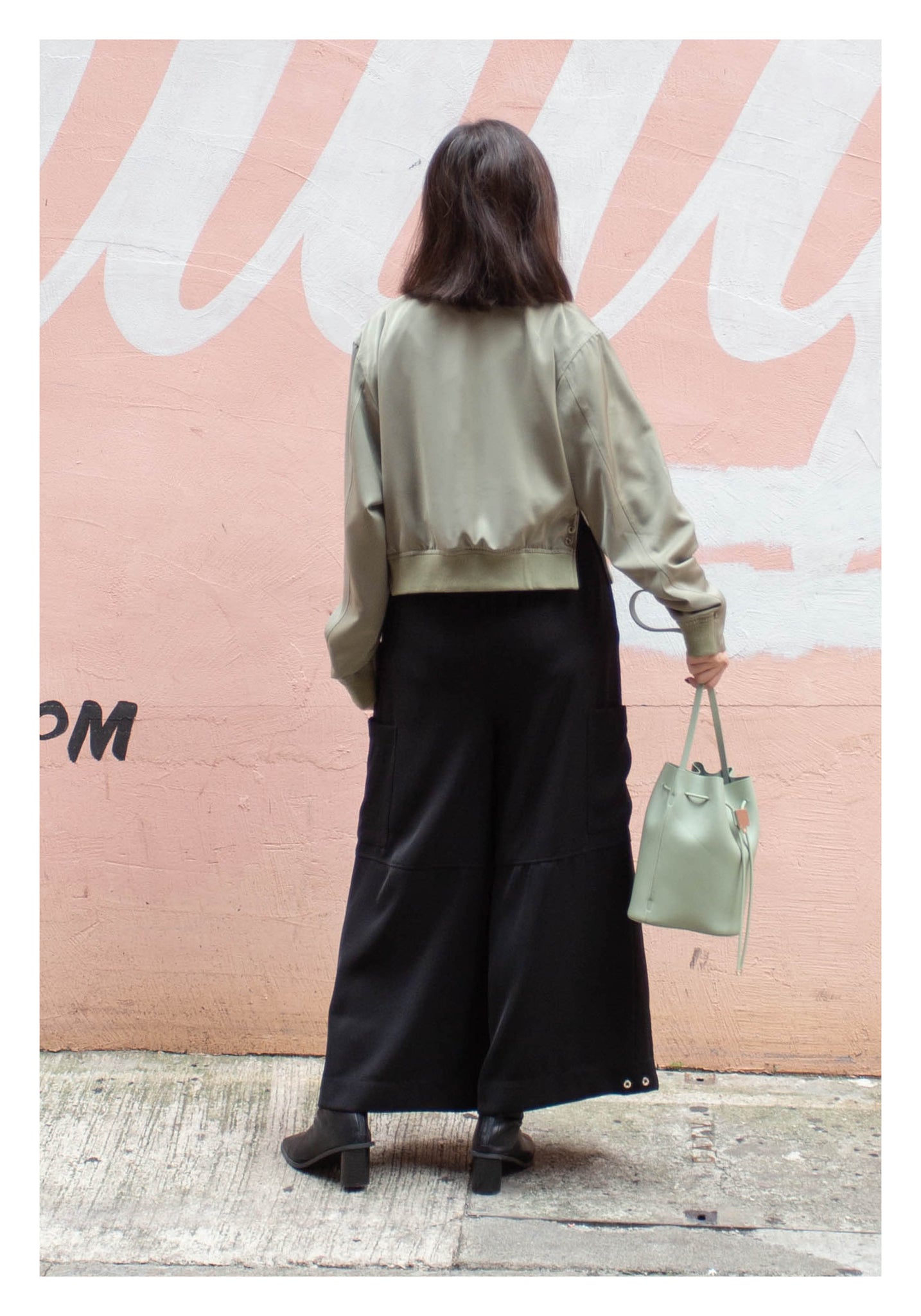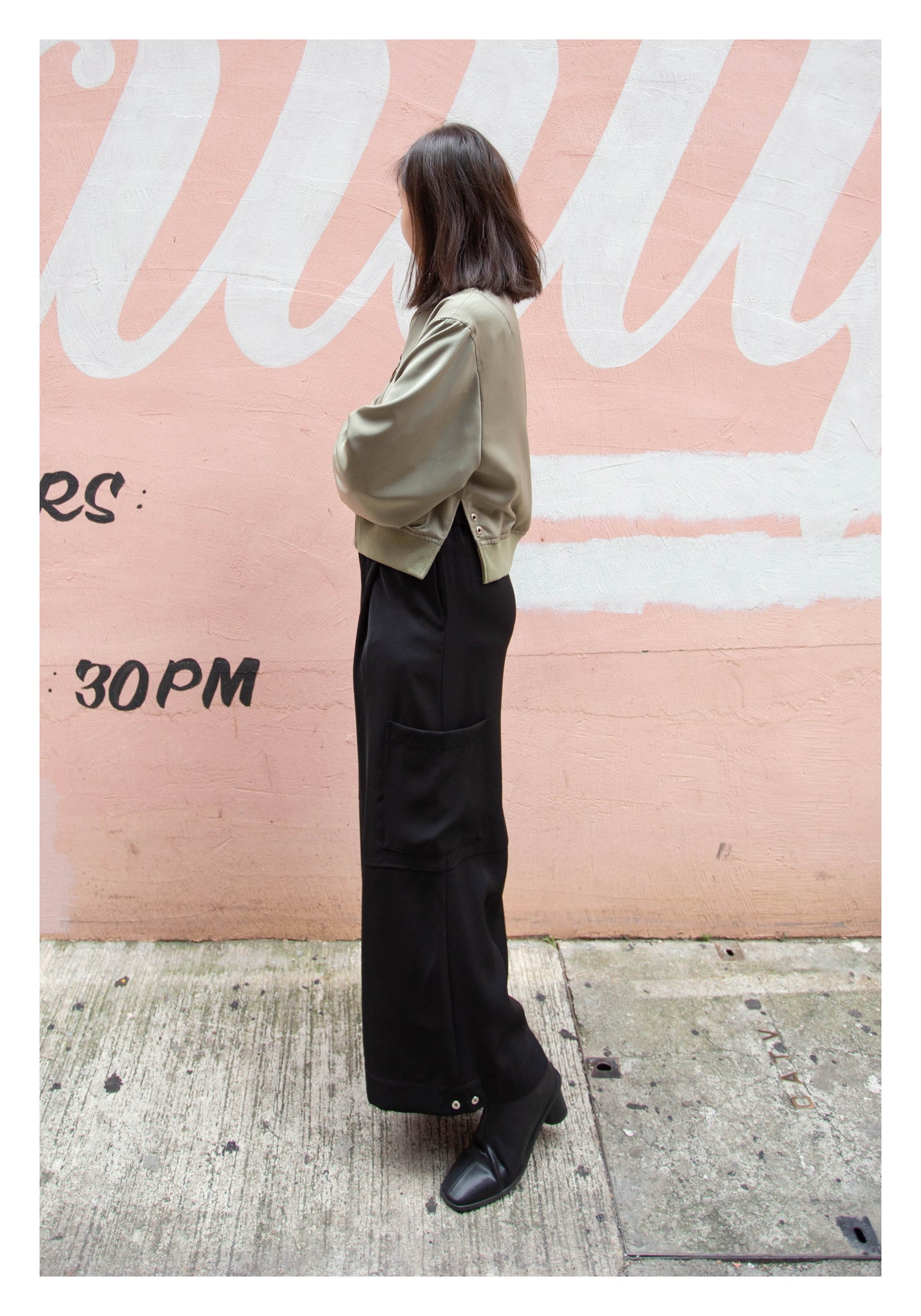 Craft in cropped length with side slit twisted bomber jacket style